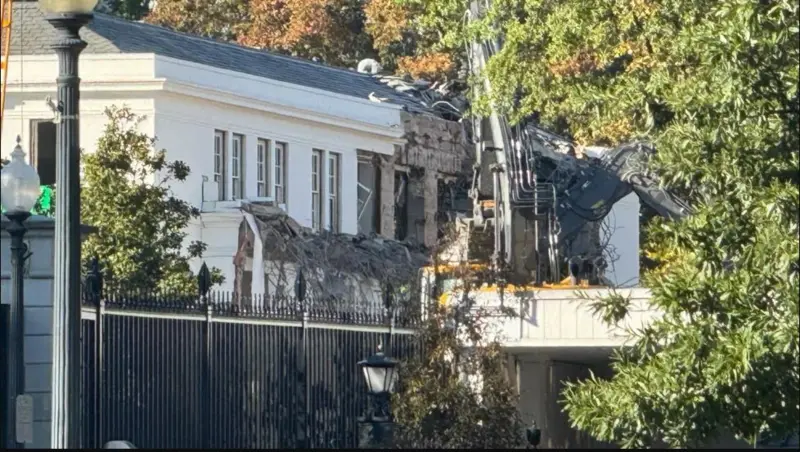 Shaqaaluhu waxay bilaabeen inay burburiyaan qaybtan ka midka ah Aqalka Cad Isniintii. Mr Trump waxa uu hore u sheegay in ku darista hool martida cusub lagu qaabilo “aysan wax u dhimayn hab-dhismeedka guud ee dhismaha aqalka Cad.”